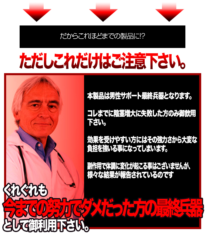 精力増強・・・あなたの男の悩み(長さ・太さ・硬さ・持続力)を一度に解決!脅威の硬さとパワー!誰にも気づかれずにサイズをアップ!男力復活!! 増毛育毛・・・頭の悩みも一刀両断!!脱コンプレックス。更なる男の魅力を磨いてください。